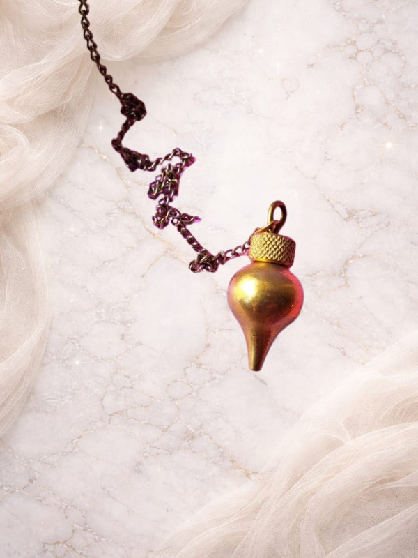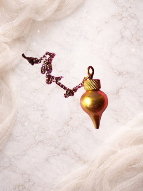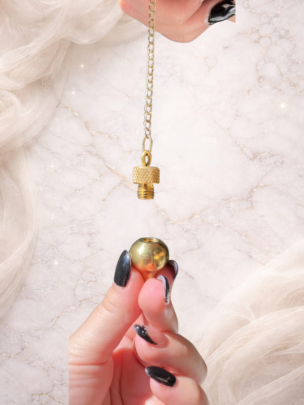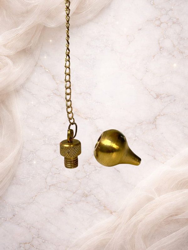 Este Péndulo de bronce está compuesto de dos partes desenroscables, siendo una el cuerpo y la otra la tapa. En el interior del Péndulo de metal hay un pequeño hueco que posibilita la colocación de material como Testigo, lo cual ayuda a facilitar la lectura de las mediciones.